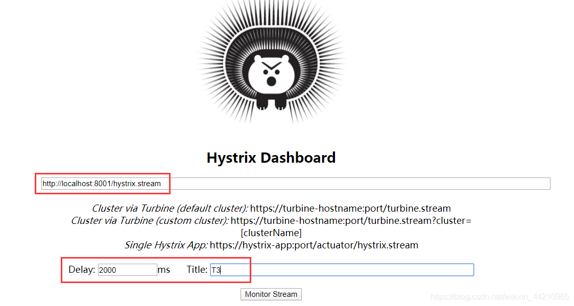 - 9001监控8001,填写监控地址:http://localhost:8001/hystrix.stream