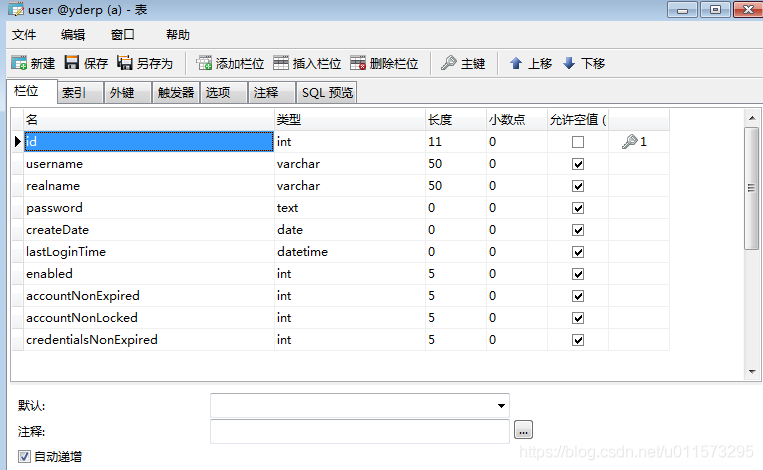 user用户名:ennabled,accountNonExpired,accountNonLocked,CredentialsNonExpired默认为1