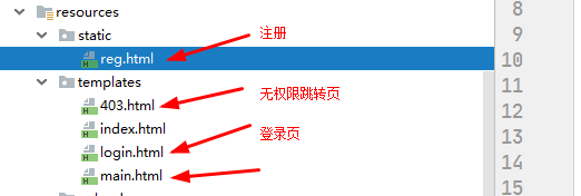 spring.thymeleaf.cache=false3.资源文件,其中main.html为需要权限才能访问的页面