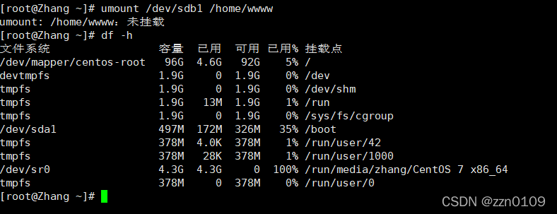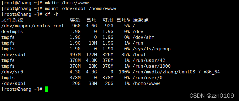 可看到/dev/sdb1 已经挂载到 /home/wwww 的目录下