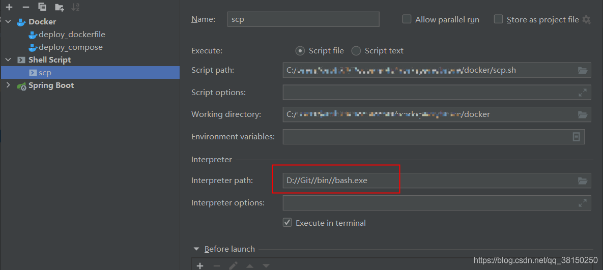 scp target/docker.jar root@${ip}:/data/demo/docker.jaridea 调用 shell 脚本时需要设置 解释器 (interpreter)