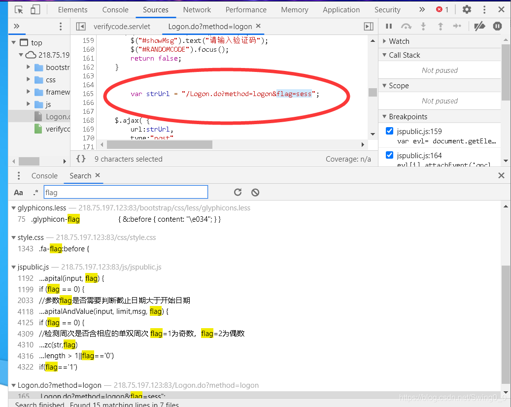 其中的flag参数是重要线索,顺着这个参数找到对应的js