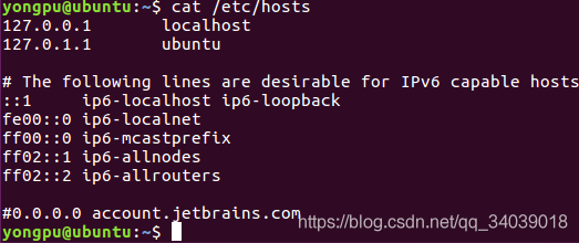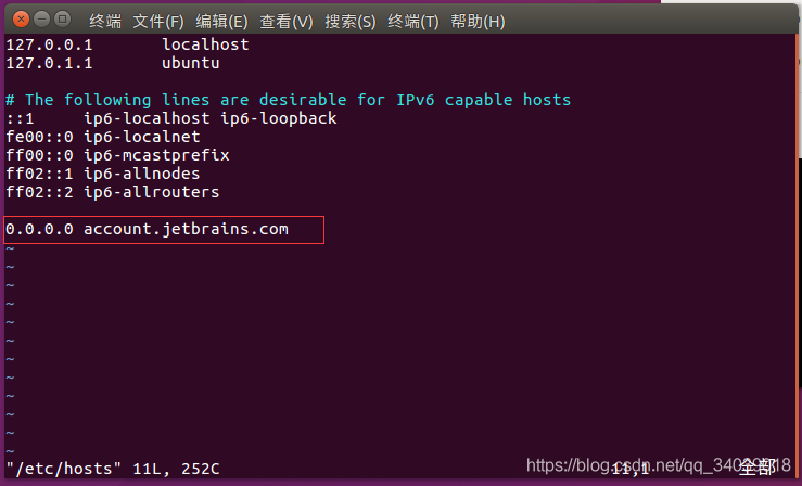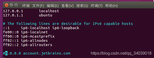 删除或者注释掉account.jetbrains.com 这一行,修改完毕后保存并退出