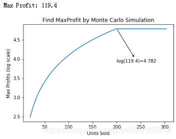 xy=( 200, round( log(maxprofit),3) ), #The xy parameter specifies the arrow's start position