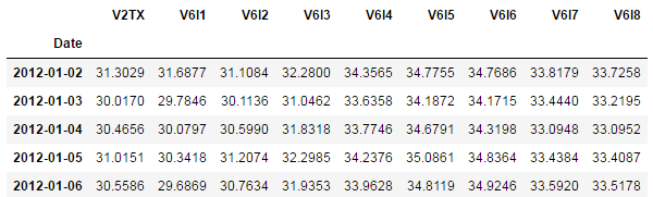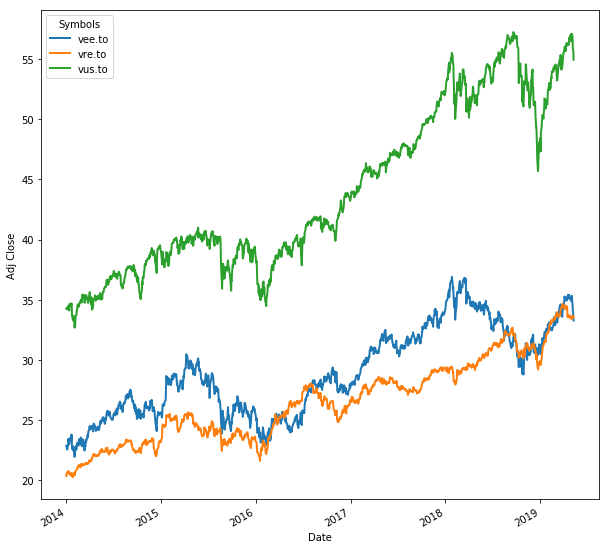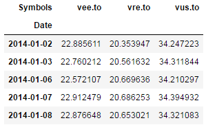 data = get_data_yahoo(['vus.to', 'vre.to', 'vee.to'], start='2014-01-01') ['Adj Close']