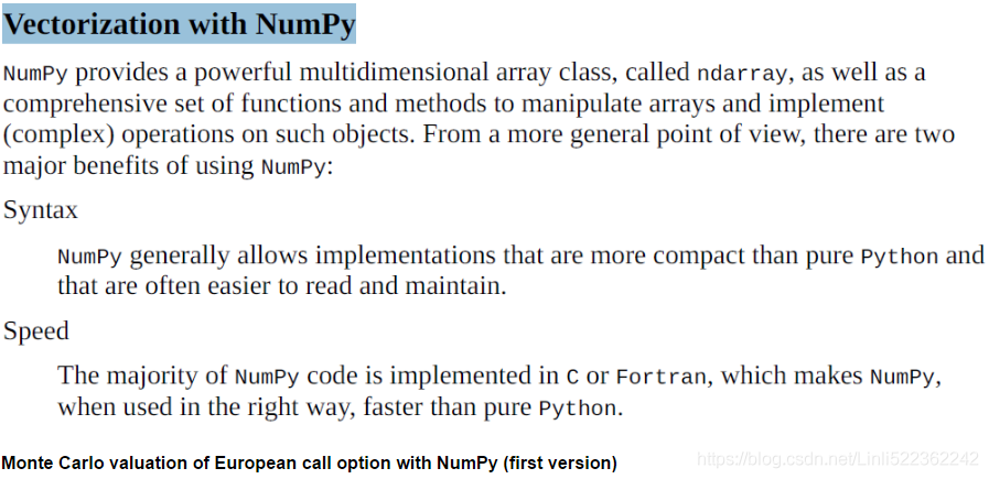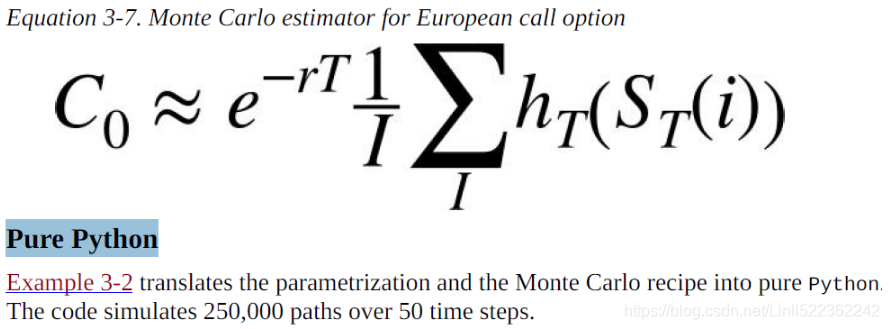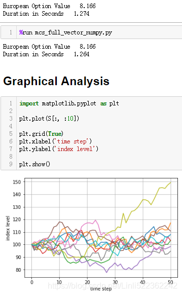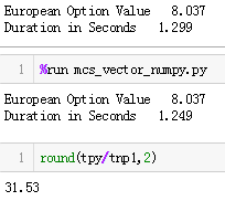 tpy = time() - t0 print("European Option Value %7.3f" % C0) print("Duration in Seconds %7.3f" % tpy)