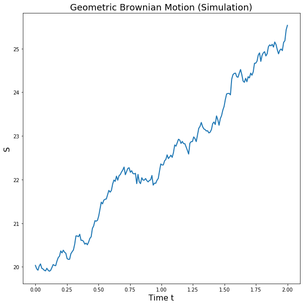 plt.title("Geometric Brownian Motion (Simulation)", fontsize=18)
