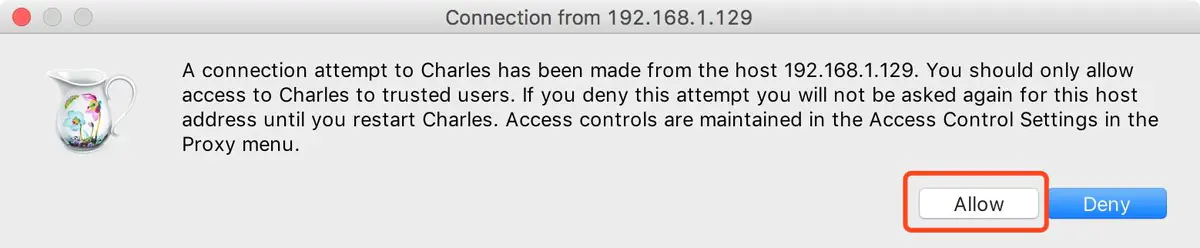 设置完成后访问网络时,服务端会弹出提示,点击Allow(同意连接):