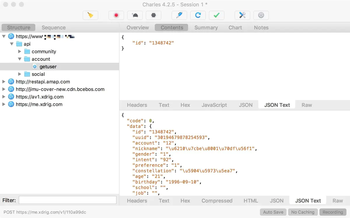 有的APP为了防止抓取,在返回的内容上做了层加密,所以从Charles上看到的内容是乱码。这种情况下也只能反编译APP,研究其加密解密算法进行解密。
