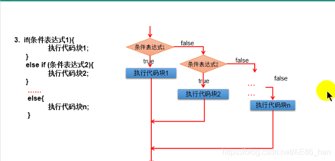 第三种:多选一(肯定会执行一个,具体执行请参照二选一)if(条件表达式1){