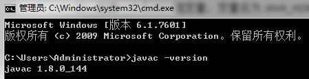 ③、检测是否配置成功。打开命令行窗口,输入javac -version。安装成功则看到oracle JDK版本号,如下图所示: