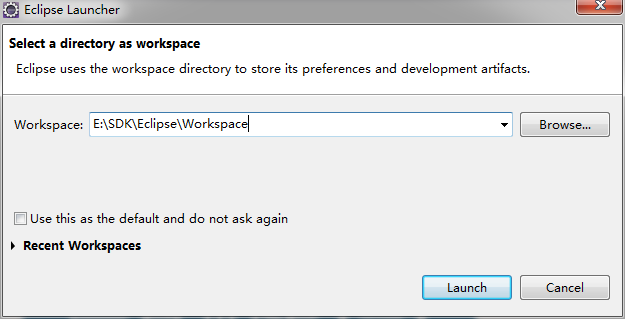 3、双击eclipse/eclipse.exe。自己选择工作空间存放位置,出现以下图标则安装成功,若无请检查步骤一JDK是否正确安装和配置。