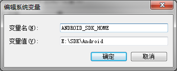 ①、新建一个系统环境变量,变量名为ANDROID_SDK_HOME,变量值为你的SDK安装路径