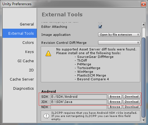②、在Unity中配置好SDK和JDK的安装路径。