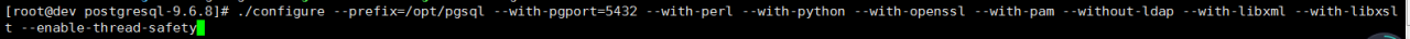 ./configure --prefix=/opt/pgsql --with-pgport=5432 --with-perl --with-python --with-openssl --with-pam --without-ldap --with-libxml --with-libxslt --enable-thread-safety