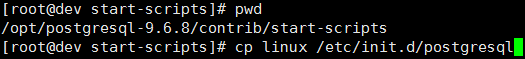 切换到root,复制安装目录下的linux文件到/etc/init.d/中,并将linux名称重命名为postgresql