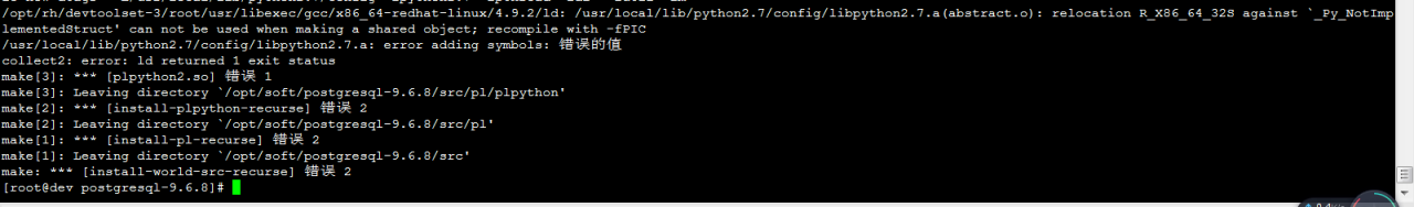 以上步骤执行完成后,然后在重新执行postgresql的make world和make install-world命令。