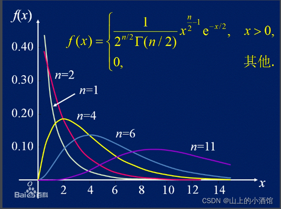 若n个相互独立的随机变量, 均服从标准正态分布(独立同分布于标准正态分布),则这n个服从标准正态分布的随机变量的平方和构成一新的随机变量,其分布规律成为x2分布,参数n=v,记为Q~x2(v)。