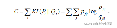 t-SNE目标函数:原空间与嵌入空间样本分布之间的KL散度。