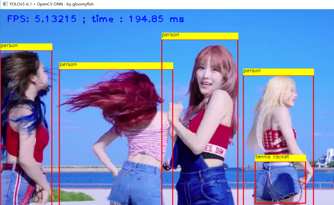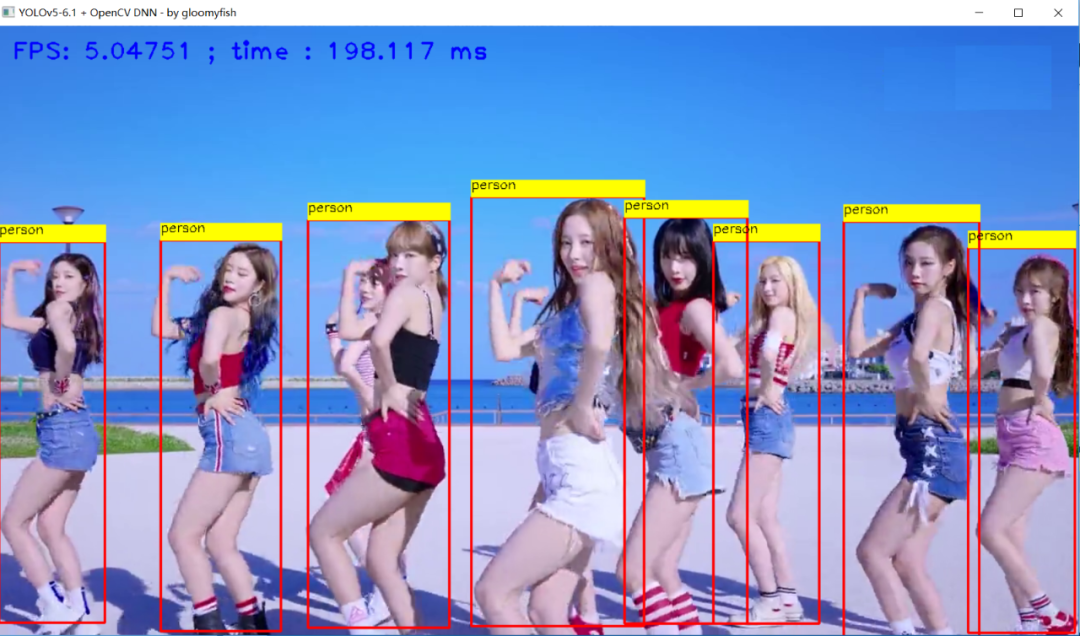 cv::imshow("YOLOv5-6.1 + OpenCV DNN - by gloomyfish", frame);