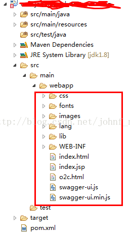 <mvc:default-servlet-handler></mvc:default-servlet-handler>然后到在GitHub上下载SwaggerUI项目,将dist下所有内容拷贝到本地项目webapp下面,结果目录如下图所示: