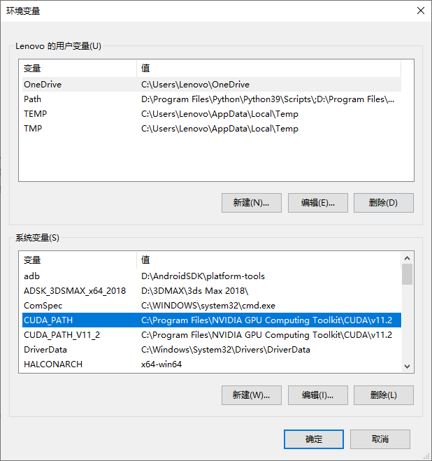 安装完成后可以查看系统环境变量,可以看到安装过程中为我们添加了2个CUDA的环境变量,并且通过环境变量路径能找到对应的安装文件