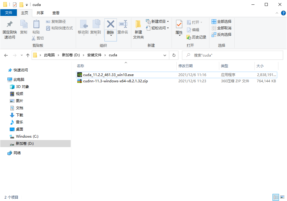 下载完成后你将得到CUDA的安装文件和cuDNN的压缩包