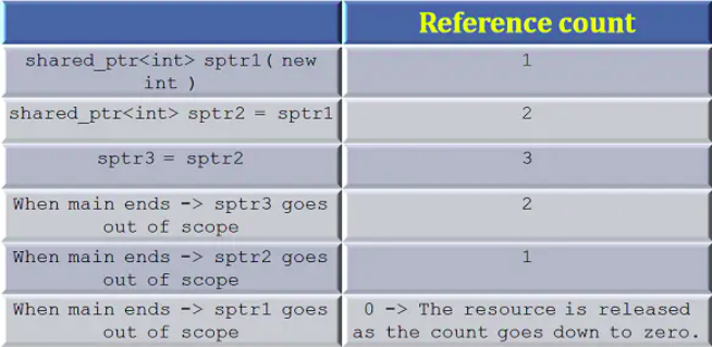 - 一旦一个shared_ptr的计数器变为0,它就会自动释放自己所管理的对象