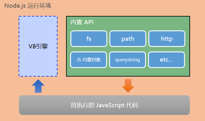 - Node.js 中无法调用DOM 和 BOM 等浏览器内置 API;