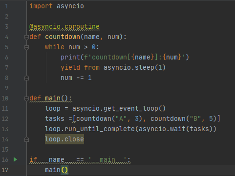tasks =[countdown("A", 3), countdown("B", 5)]