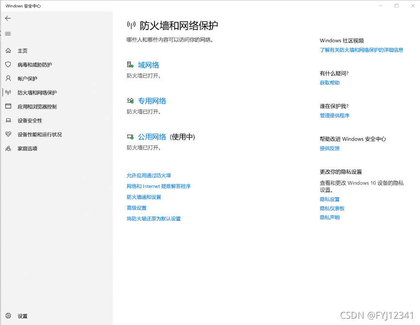 打开防火墙与网络保护