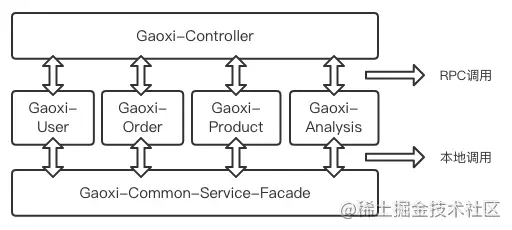 - Gaoxi-Common-Service-Facade 它处于本系统的最底层,被所有模块依赖,一些公用的类库都放在这里。