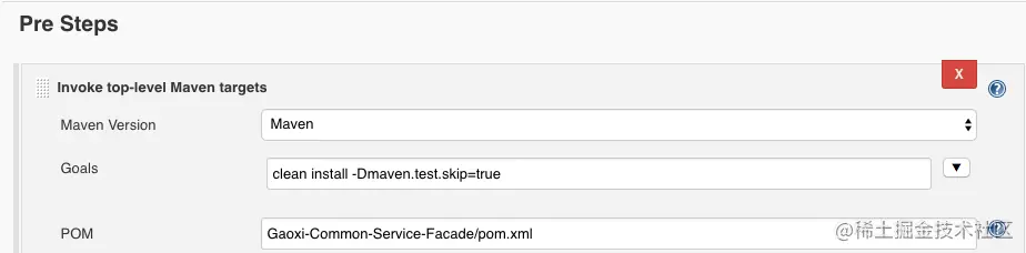复制代码- 修改Jenkins的配置 在所有Jenkins中所有Maven命令的末尾添加