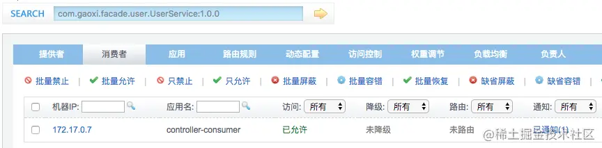 点击“消费者”我们可以看到,该服务已经被controller-consumer成功订阅: