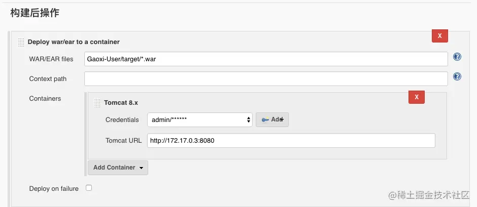 - Containers:配置目标Tomcat的用户名和密码