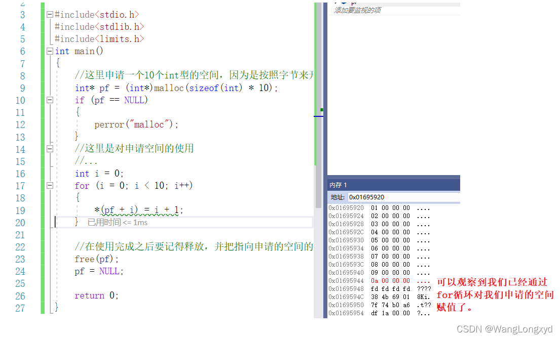 在经过for循环,经过我们手动的赋值后,再来观察内存: