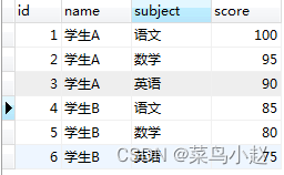 GROUP_CONCAT(CASE WHEN subject = ‘英语’ THEN score END SEPARATOR ‘’) ‘英语’