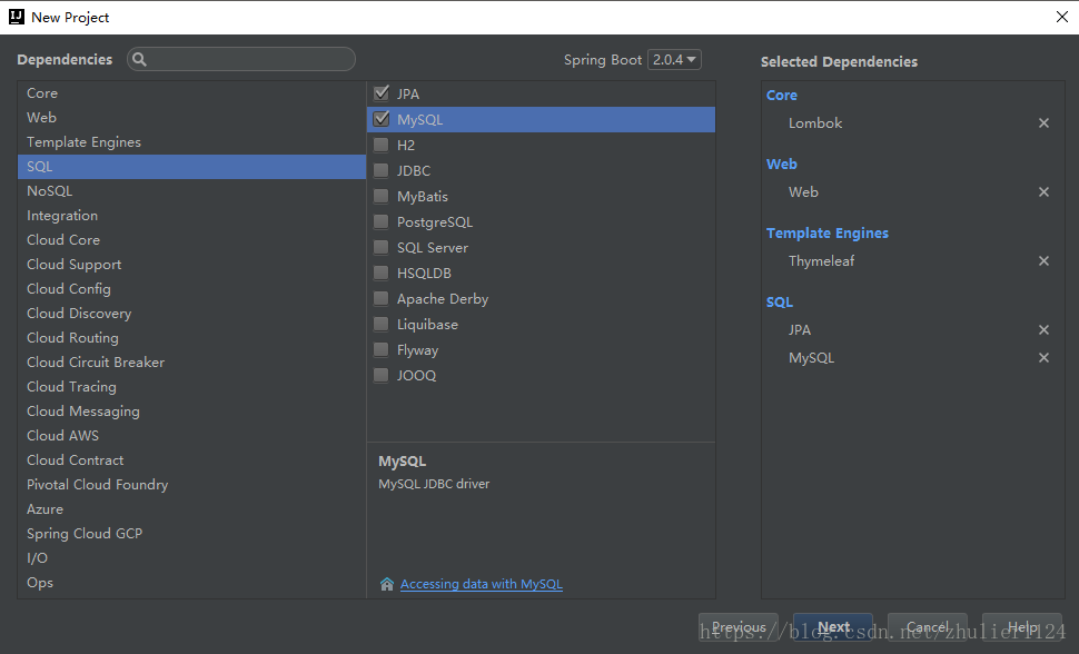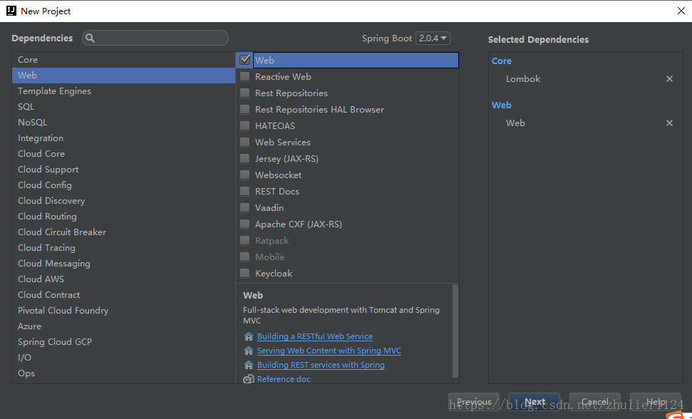3.勾选你需要的项目组件,Springboot版本我使用2.0