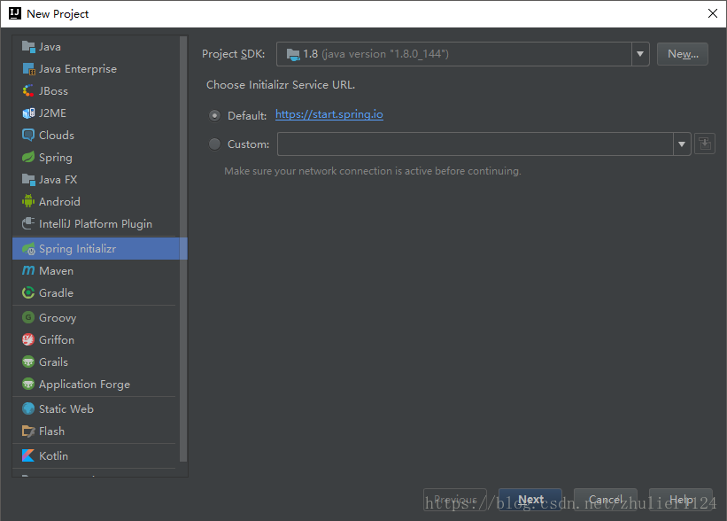 1.使用idea创建Springboot项目,选择SpringInitializr选好jdk版本点击下一步
