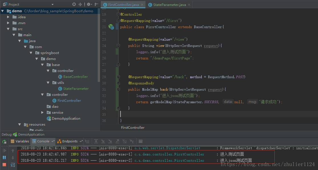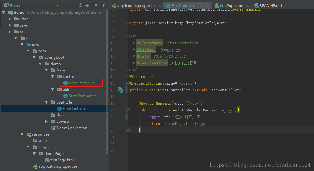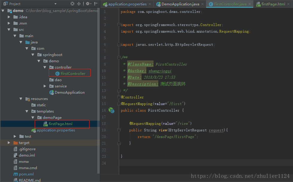 1.增加一个测试控制层和页面,添加测试类FirstController.java