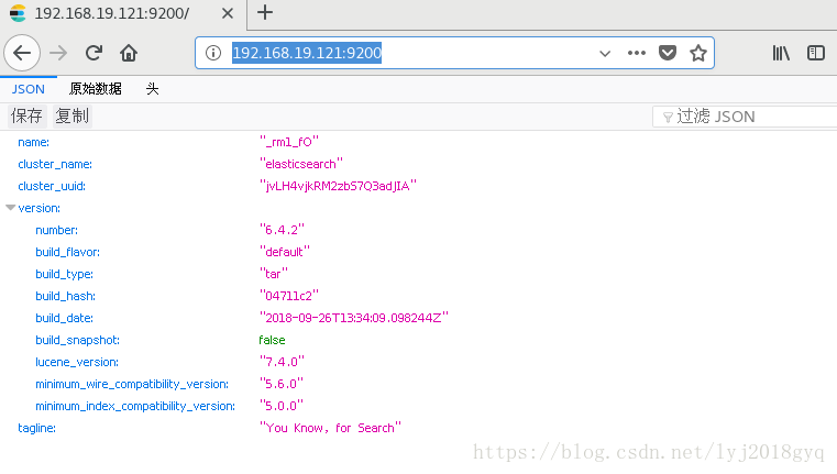 我们在浏览器中访问:http://192.168.19.121:9200/