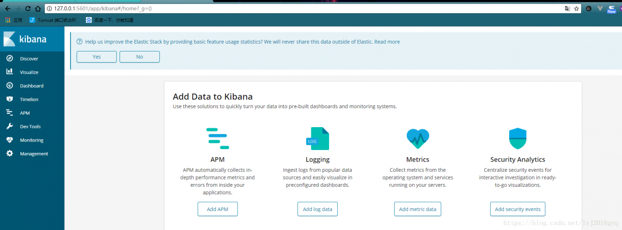 发现kibana的监听端口是5601 ,访问http://127.0.0.1:5601