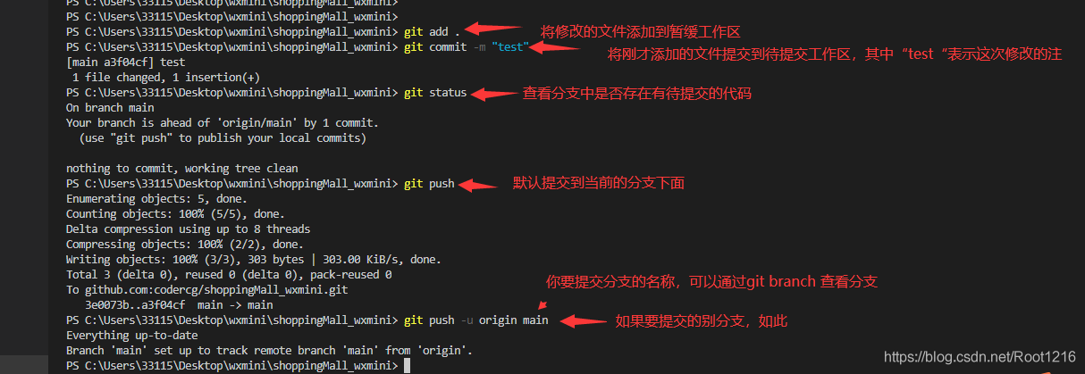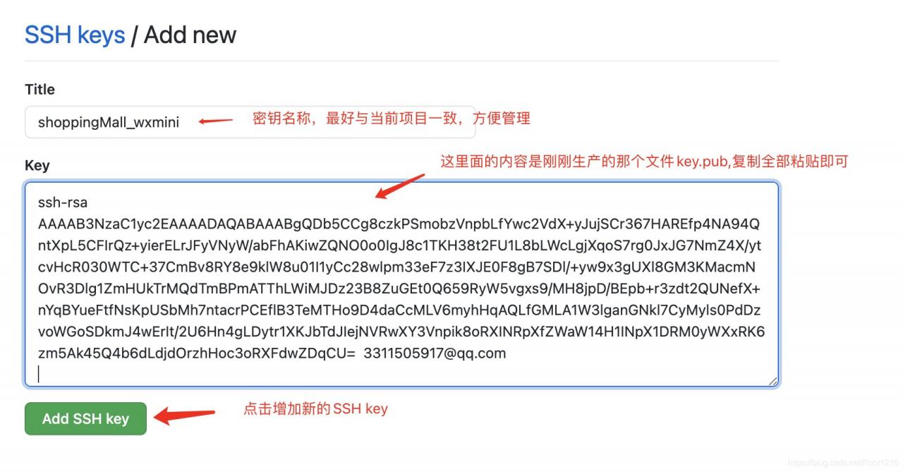 如:git remote add origin git@github.com:codercg/shoppingMall_wxmini.git