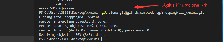 如:git clone git@github.com:codercg/shoppingMall_wxmini.git
