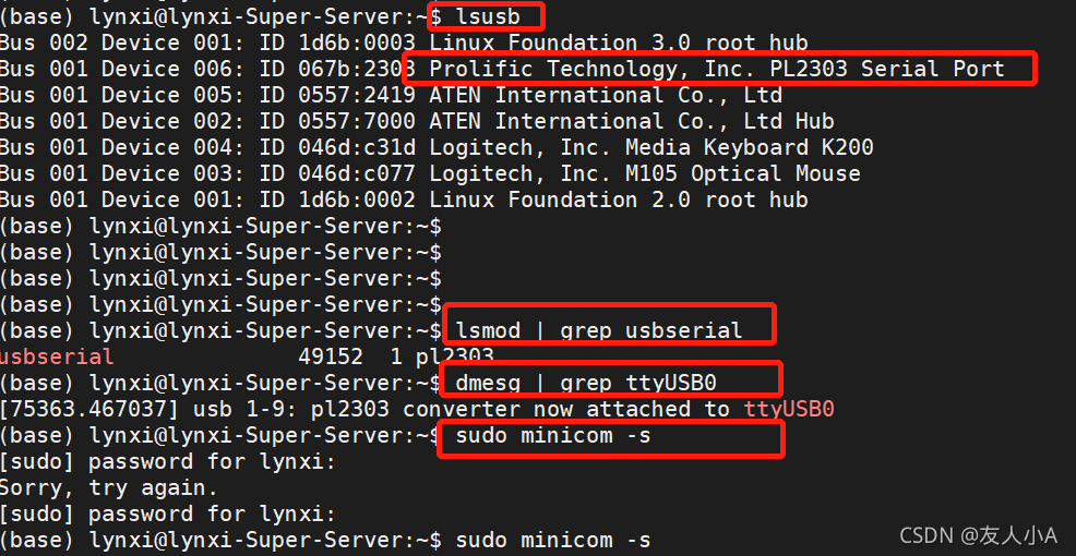 1. 首先确认系统支持USBSerial,输入以下命令: