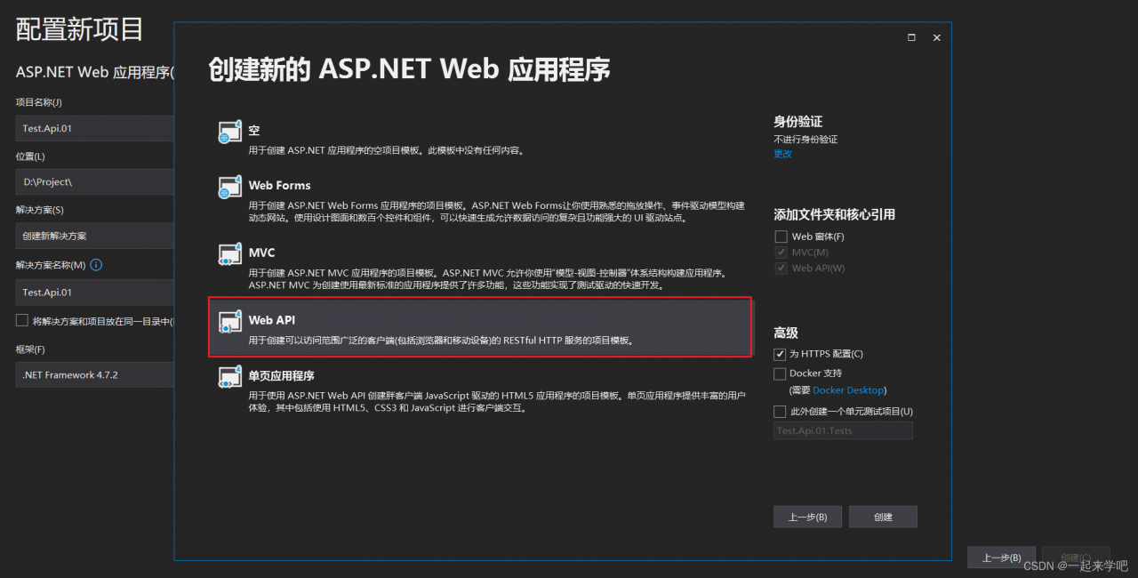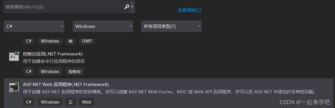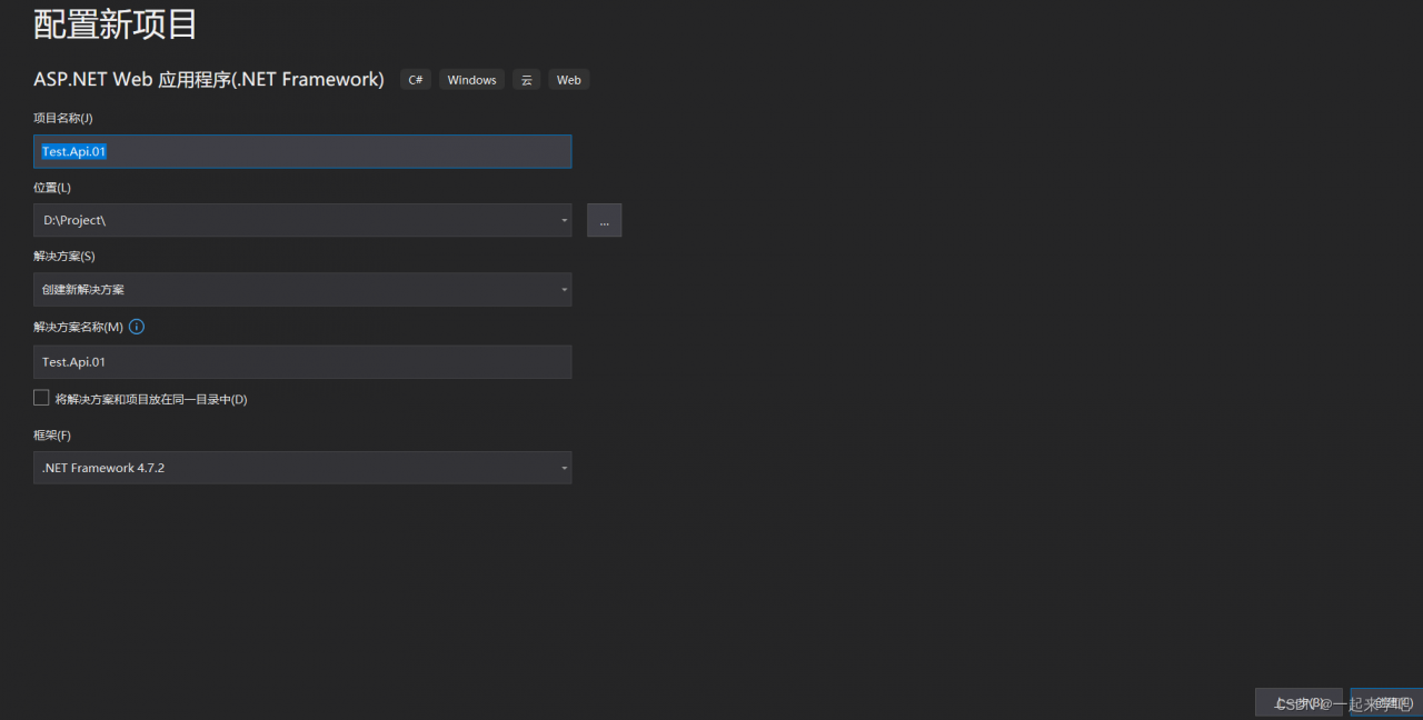 选中项目类型 ASP.NET Web应用程序(.NET Framework)