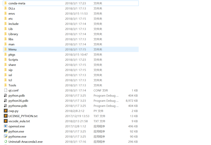 这里只截取了一部分, 但是我们和本文章最开头的python环境目录比较一下, 可以发现其实十分的相似, 其实这里就是base环境. 里面有着一个基本的python解释器, lLib里面也有base环境下的各种包文件.