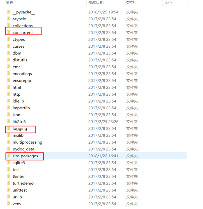 Lib目录如上图, 这里有python自带的包, 如笔者常用的日志包logging, 异步包 concurrent, 而所有的第三方包都放在site-packages文件夹里面