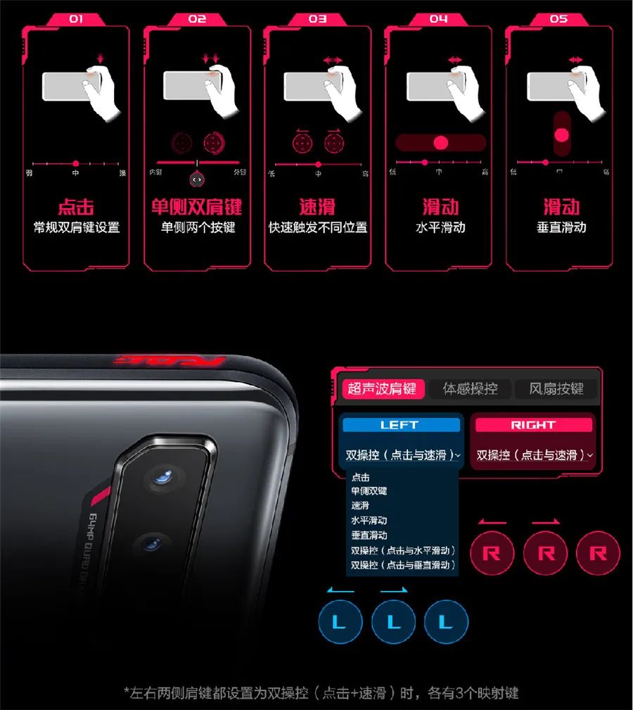 腾讯ROG游戏手机5s系列AirTrigger超声波升级至2×3双操控模式,单侧肩键支持设置点击+水平/垂直滑动,可轻松解锁食指战力。如果使用加装酷冷风扇5的腾讯ROG游戏手机5s,还能进一步解锁双背键体验,让其他手指也能参与到操控当中。与腾讯ROG游戏手机5s不同,腾讯ROG游戏手机5s Pro无需加装,其背面自带双背键,可以映射更多按键,带来手柄式的精准操控。更配置炫彩ROG Vision个性视窗 ,可供玩家自由定制彩色图案,展现个性的同时,更带来更强电竞氛围。