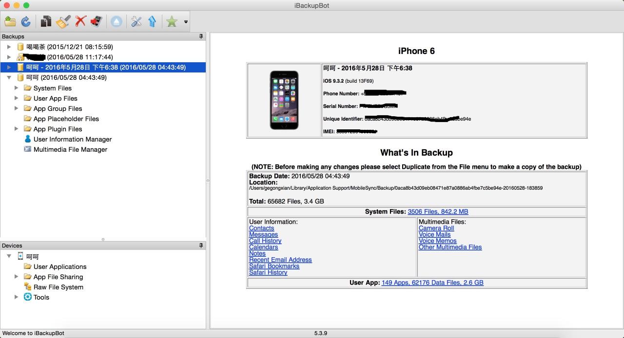 备份好之后可以用 iBackupbot 查看下: